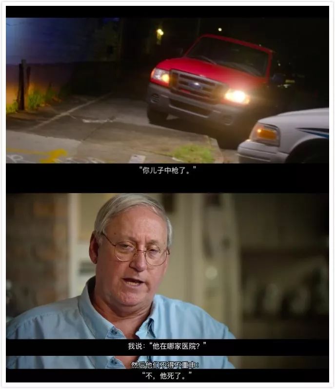 枪杀丹尼的杰弗里对着镜头说到童年的不幸,他成长于一个残缺的家庭,母亲沉溺毒品,有一次,她抓着儿子的手,放在燃烧的炉火上。