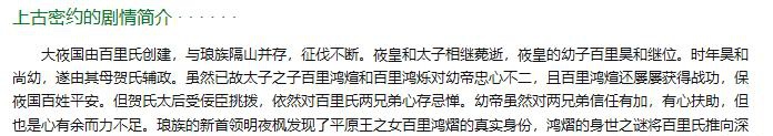 此剧故事灵感来源于《山海经》,之前的名字也叫《山海经之上古密约》,描述的是发生于上古时代的玄幻故事。