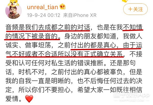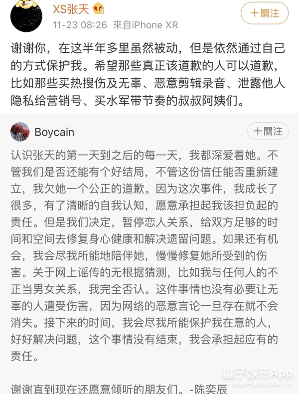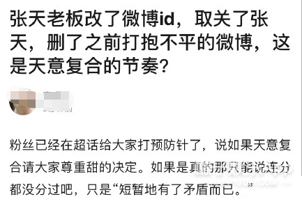 最近被发现暂停的恋爱又播放了,张天的回应还在维护男方。