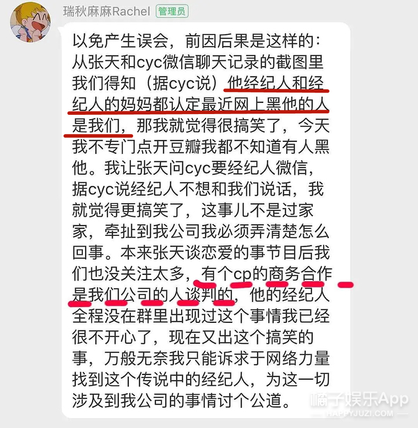 “他经纪人和经纪人的妈妈都认定最近网上黑他们的人是我们”?