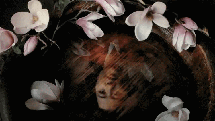 原本在深闺中生活的木兰在替父从军后完成了身份的转变,但通过玉兰花点缀的盛水木盆,年轻的木兰形象还是倒映出来,极具东方美感。