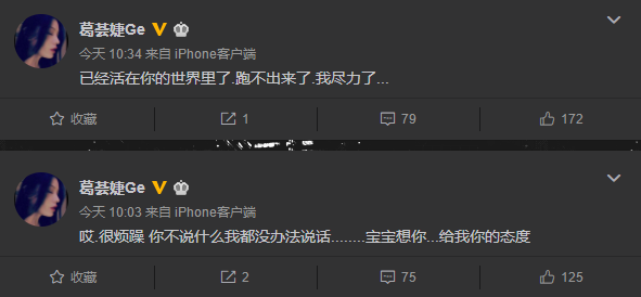 从葛荟婕的发文中看,这段时间的她非常烦躁,而且似乎对于之前的感情依然久久不能忘怀,所以在社交平台大倒苦水。