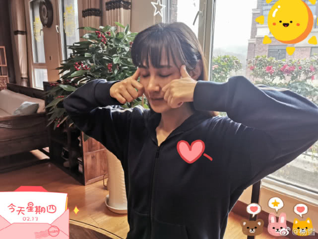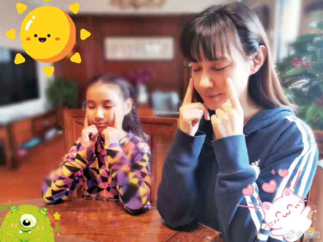 2月13日,杨雪晒出了一组与女儿同框合影,配文:“还记得我们小时候做的眼保健操吗,每天上午十点钟,和我们一起做做吧!”画面中,母女俩端坐在桌前,因为疫情无法出门,倒是提醒大家久盯手机屏幕和电脑要让眼睛多多休息