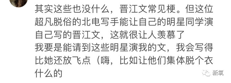 其中不乏粉丝对编剧表达了羡慕之情,谁小时候还没写过一两篇晋江文呢,但能把自己的晋江文拍成电视剧,还请来这么多明星演的,大概也就只有北电的同学了吧。