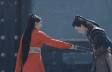 在一场宋祖儿与吴磊的对手戏中,女主拿剑捅向了男主的腹部,男主顺着剑就“滑了”过去给女主来了个深情的拥抱。