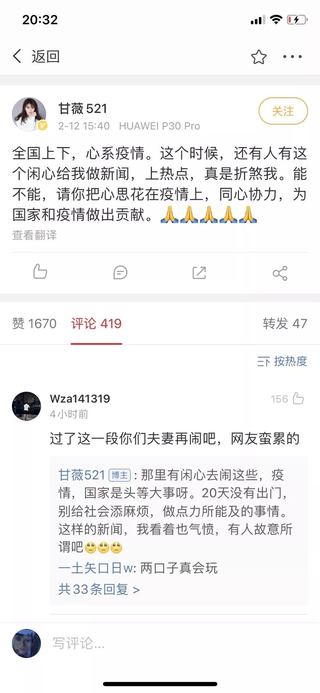 而甘薇也迅速回应了: