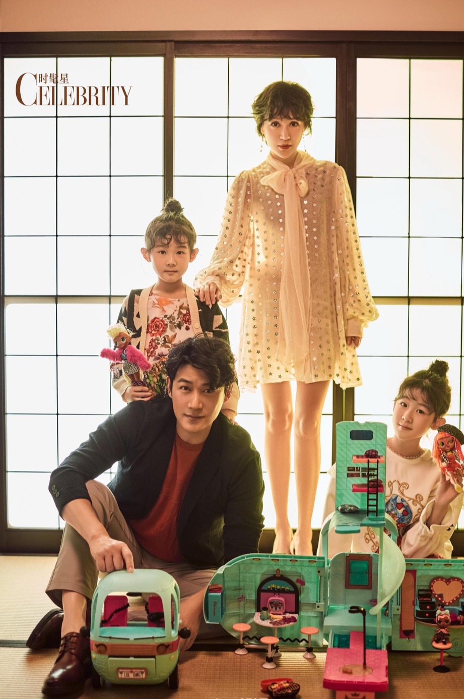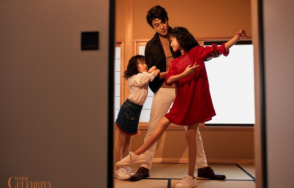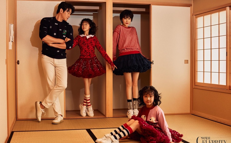 12日,陆毅、鲍蕾一家四口最新大片正式曝