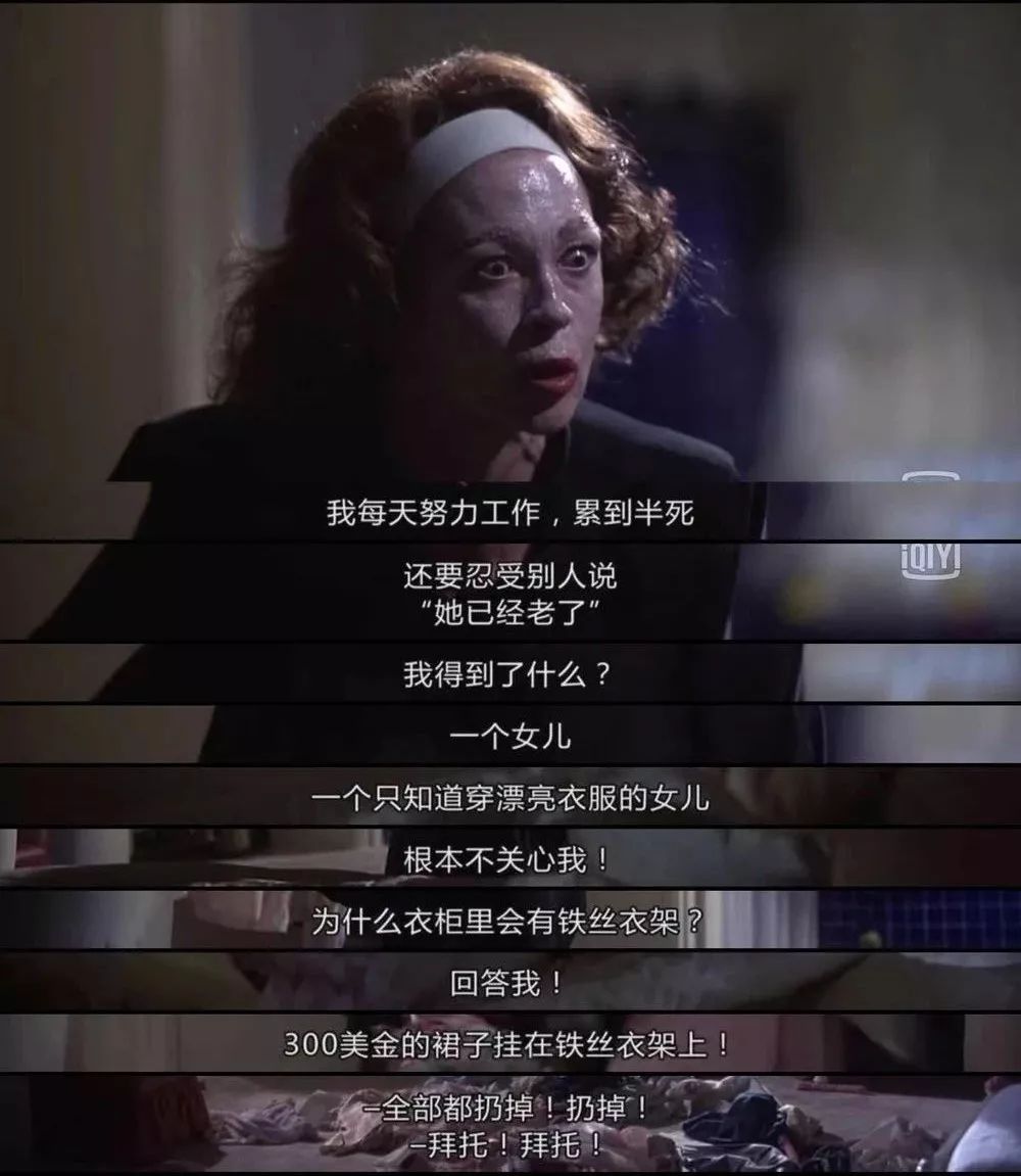 1981年有部电影叫《亲爱的妈咪》,是琼·克劳馥的养女写的原著,借这位养女的双眼我们可以看到正当盛年时的女明星的另一面,一开头你就可以看到作为四十年代最出名的女明星琼·克劳馥拥有何等奢华的生活,但同时也对于她们的事业,她们的外在有何等严重的焦虑。