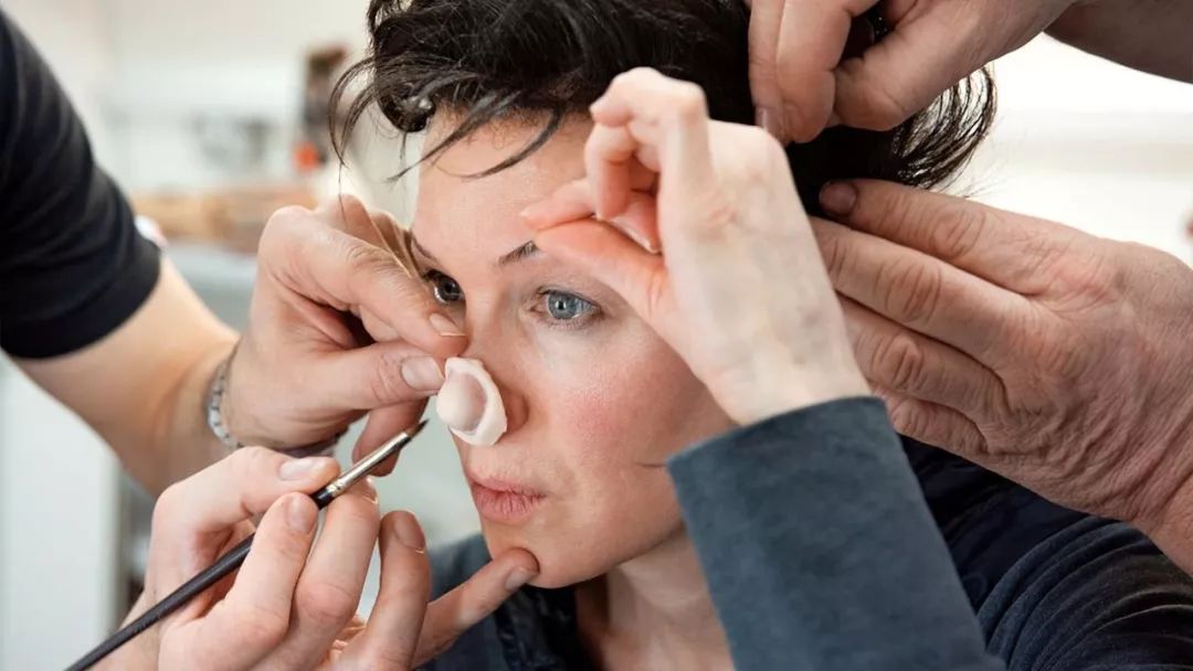 ▲好莱坞化妆师Jeremy Woodhead也同时得了最佳化妆与发型设计奖提名,她替蕾妮加了一丢丢鼻子假体、一副深色隐形眼镜(齐薇格原本瞳孔是蓝色),一头深色假发、一副假牙(还原了加兰的一口乱牙,也顺道改变了下巴的位置)
