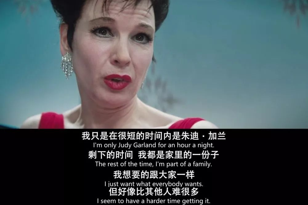 ▲片子中有很多表现朱迪焦虑和神经质的镜头,印象最深的是每次演出前后她的形容枯槁和极度焦虑,各种抖腿,各种抽搐,让人看得压抑而焦躁,继而又赞叹了一下蕾妮·齐薇格可真会演。