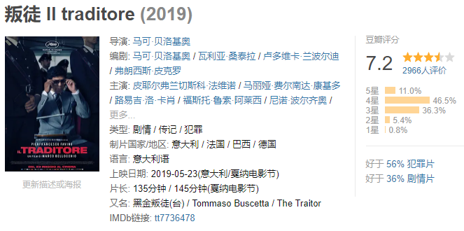 《叛徒》正是以此为背景,根据真实事例改编,从黑手党“叛徒”布达西的角度回顾反黑战争。