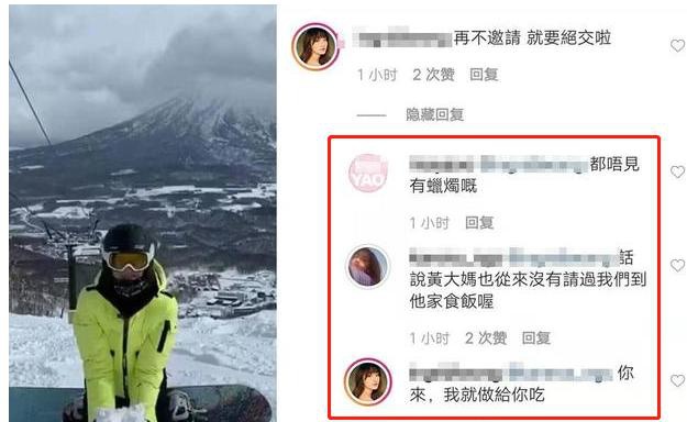 吴千语的朋友看到这条动态后便给她留言,其中一名朋友写到“话说吴大妈也从来没有邀请我们到她家吃饭哦”,吴千语还在线回复“你来,我就做给你吃”。