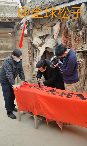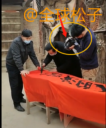据网友曝出的视频可以得知,大衣哥这块演唱会的背景布也是让人现写的,写的时候旁边还有人拿着专业的摄像设备在拍摄。