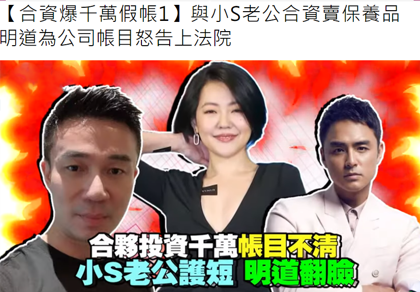 2月12日,根据台湾媒体报道,小S与老公还有L女、明道工作室一起集资创立的保养品牌,账目短缺近千万,疑似有假账的内幕,如今明道已经因公司账目怒上法院,小S老公许雅钧则为了维护L女导致明道翻