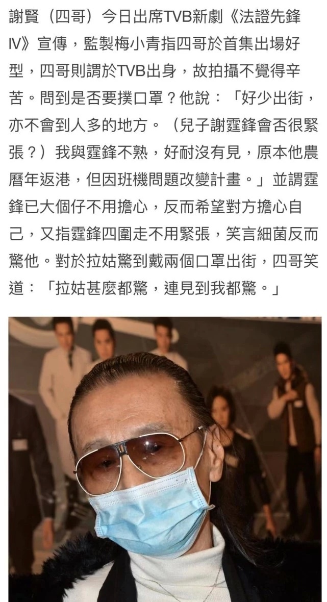 谢贤又大了一岁,但他外表一点没变,依旧风度翩翩,接受访问的时候,戴着口罩都无法遮挡他的明星光芒。