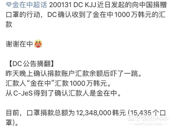 金在中给韩饭组织的活动,捐赠了千万韩元▽