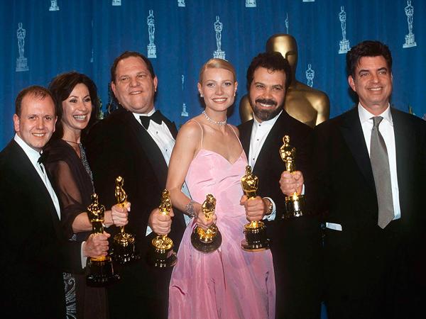 哈维·韦恩斯坦(左三)担任制片人的《莎温情史》曾夺得七项奥斯卡奖