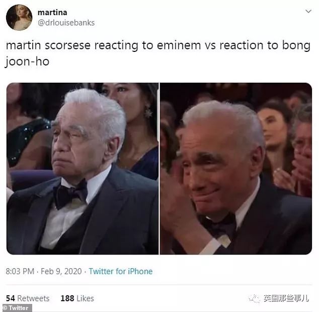 “Martin Scorsese看到阿姆时的反应 vs 他看到奉俊昊时的反应。”