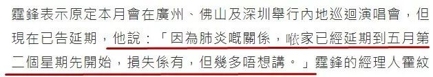 余文乐、谢霆锋等歌手的演出活动也被取消或者宣布延期。