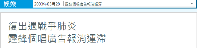 后来谢霆锋在演唱会上有感而发,说在沙士肆虐的时候,很多人劝他去加拿大避灾,但他拒绝了。