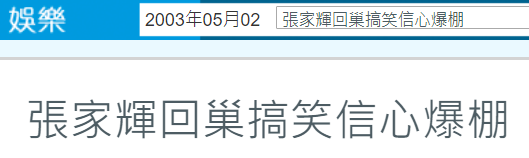 非典期间播出的轻喜剧还有《十万吨情缘》,这也是张家辉的回巢之作。