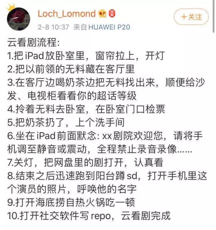 一台好戏官方微博的转发中,有剧迷朋友为表达自己对剧场的思念,发出一份“云观剧流程”。