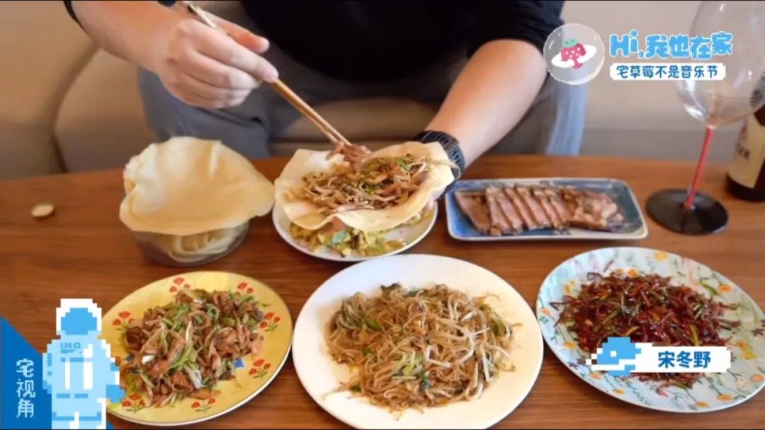 宋冬野在自制视频里就“表演”了在家做饭撸猫,放钢琴曲吃春饼,红酒杯里倒啤酒,“就是这么与众不同”。