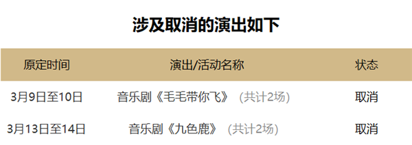 上海文广正处于原创华语音乐剧展演季,第一季度有6部原创音乐剧受到影响,其中《毛毛带你飞》和《九色鹿》两部剧已经取消演出。