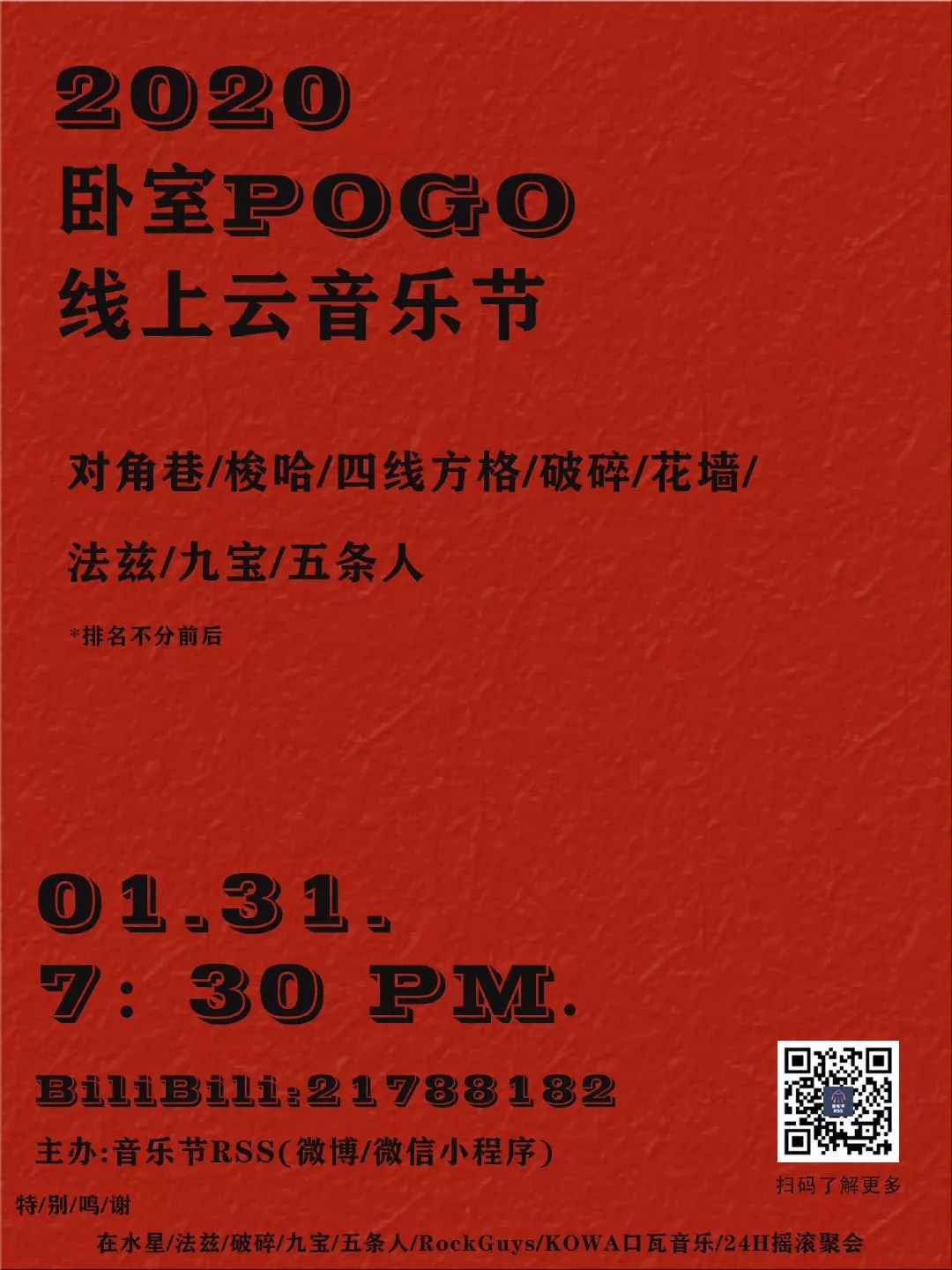 2月9日2020卧室POGO云音乐节音乐人阵容