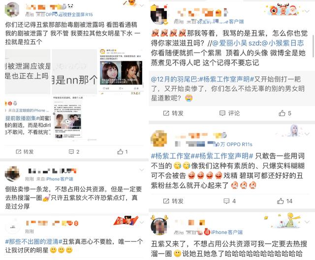 杨紫方现已对提及的侵权账号进行追责,并敬告所有心怀恶意的人士及团队,请勿抱有侥幸心理。根据网上传言,其中一个郑爽粉、两个迪丽热巴粉、三个博君一肖CP粉、两个肖战粉。