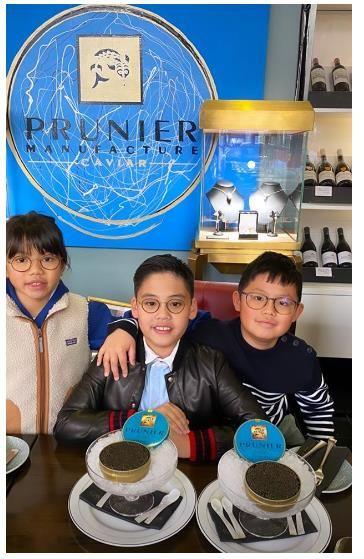 在另一张照片里,许建彤则跟他的小伙伴们一起吃鱼子酱庆生,三个小朋友并排,许建彤坐C位,双手规矩地放在桌子上,不仅非常绅士,还透露出一种霸道总裁范。
