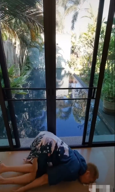 高虎身后是一个露天游泳池,周围还摆放了非常多的绿植,环境看上去非常好。以装修来看,高虎居住的别墅价值不菲。