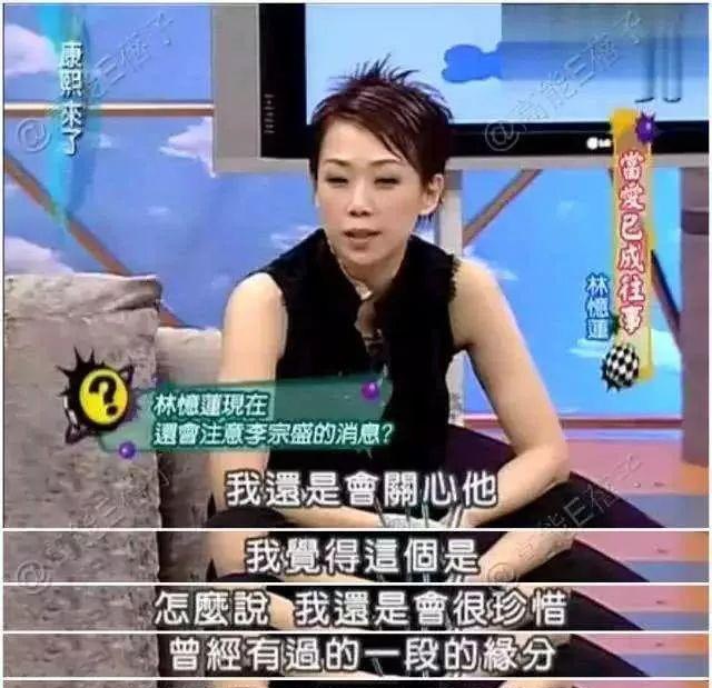 只是没想到,这场表演之后的一年,两个人便分道扬镳。林忆莲甚少公开提及李宗盛,只在一次《康熙来了》里被问到会不会和李宗盛复合,她淡淡地说了一句:应该没有这样的可能。