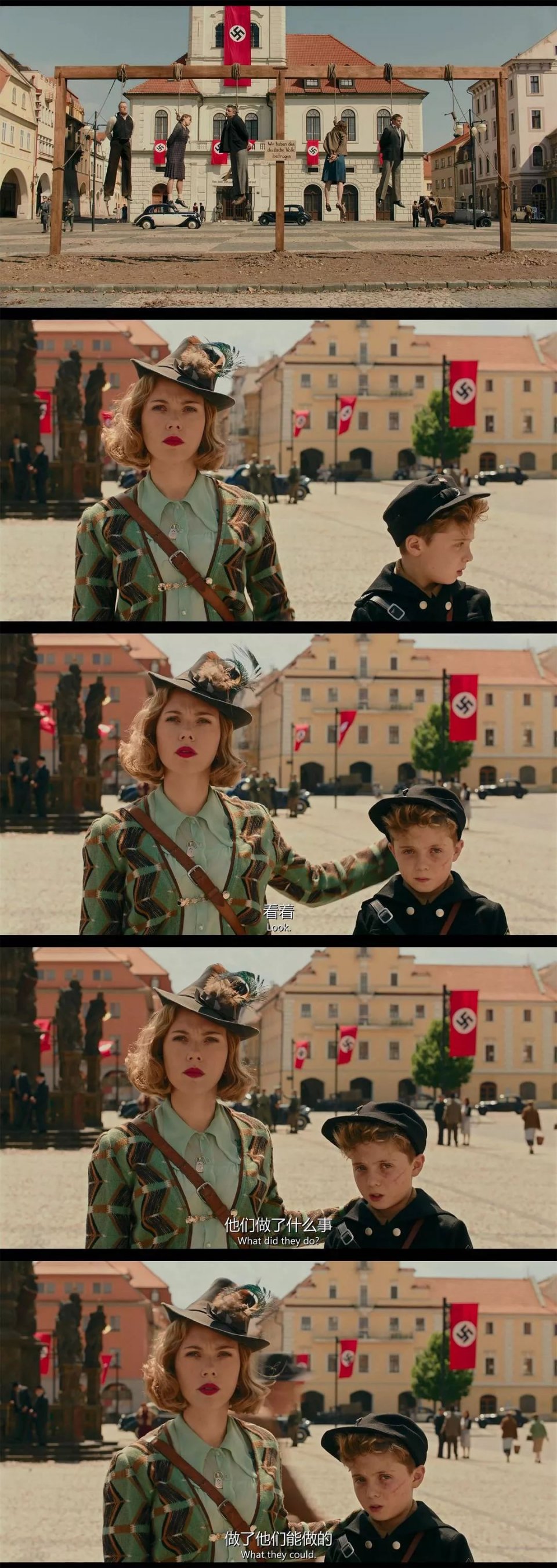 影片中有一个桥段。罗茜带着乔乔上街,看到几个人被吊死在路边,乔乔问妈妈:“他们做了什么事?”