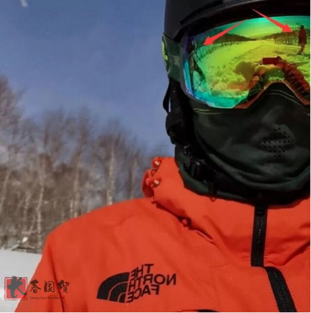 而后网友晒了一张照片,但照片里并不是谢霆锋和王菲,而是用谢霆锋一张护目镜反光的照片,以箭头分别标注了反射出的两人,称其中一位就是王菲,以此证明谢霆锋和王菲一起去了日本滑雪。
