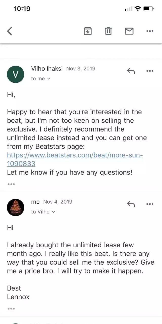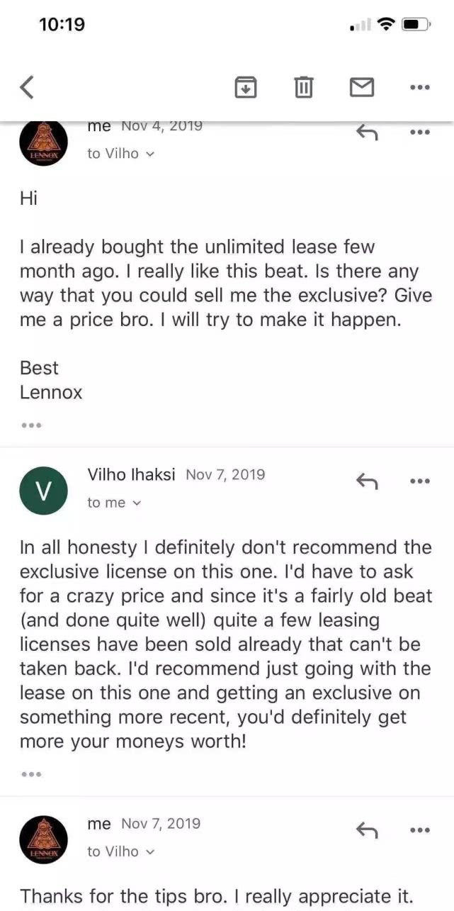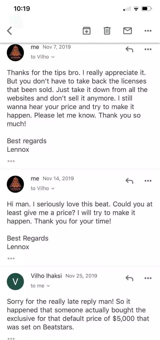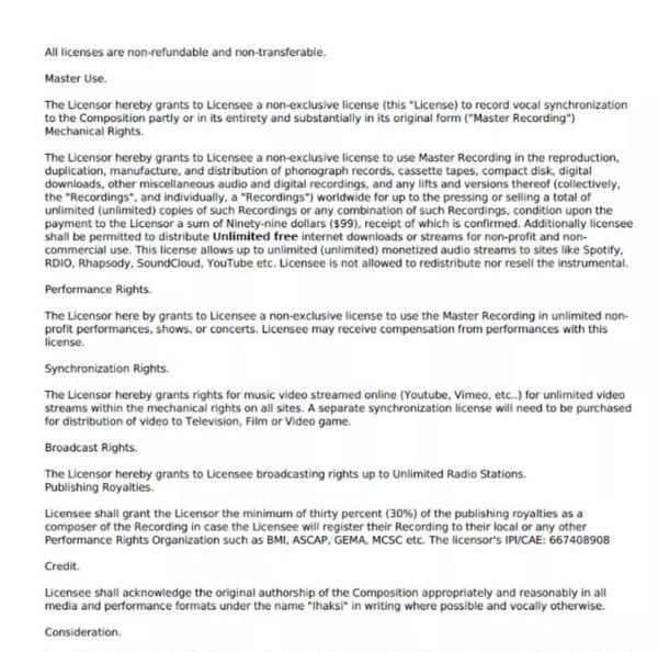 随后他以99美金的价格将其授权,表示这首beat只能非商业使用,