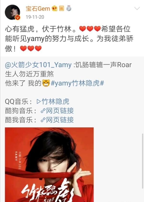 两个月前Yamy的新单曲《竹林隐虎》发布,董宝石参与了词曲的创作,还担任了监制。