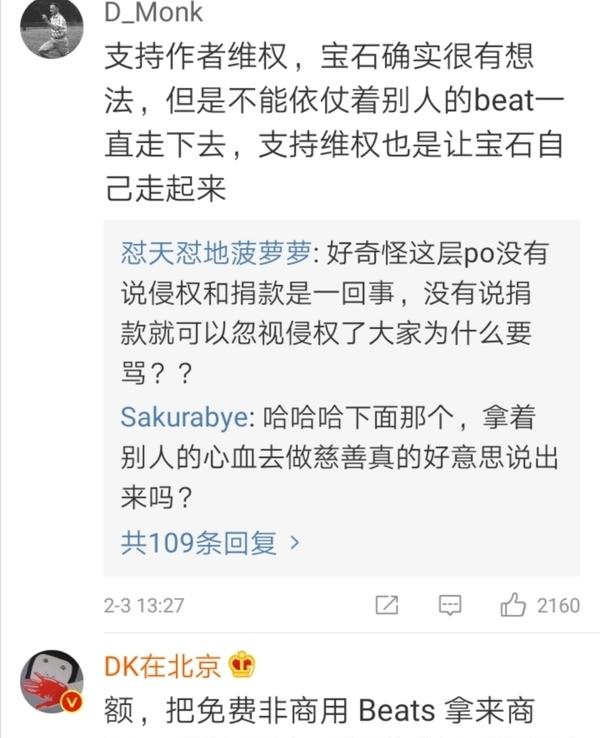 但不能进行盈利性演出,拿别人的beat赚自己的钱不就有点过分了吗?