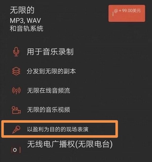 如果想要取得商业演出、广告等权限,需要额外花钱购买。