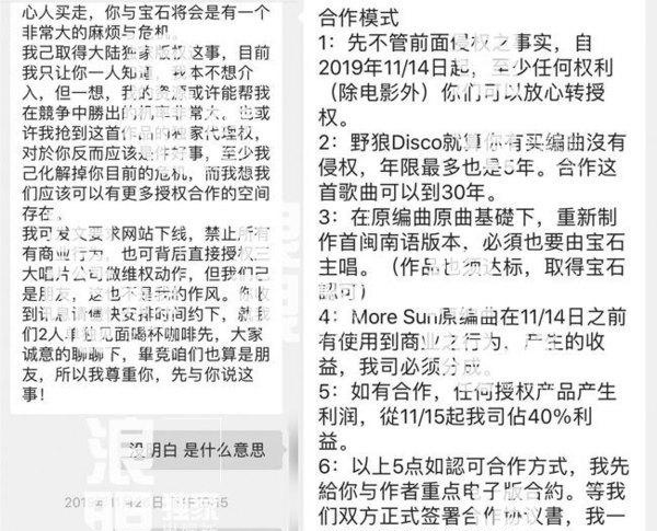 并与她沟通beat版权的后续合作事宜,还要求参与《野狼disco》的分成。