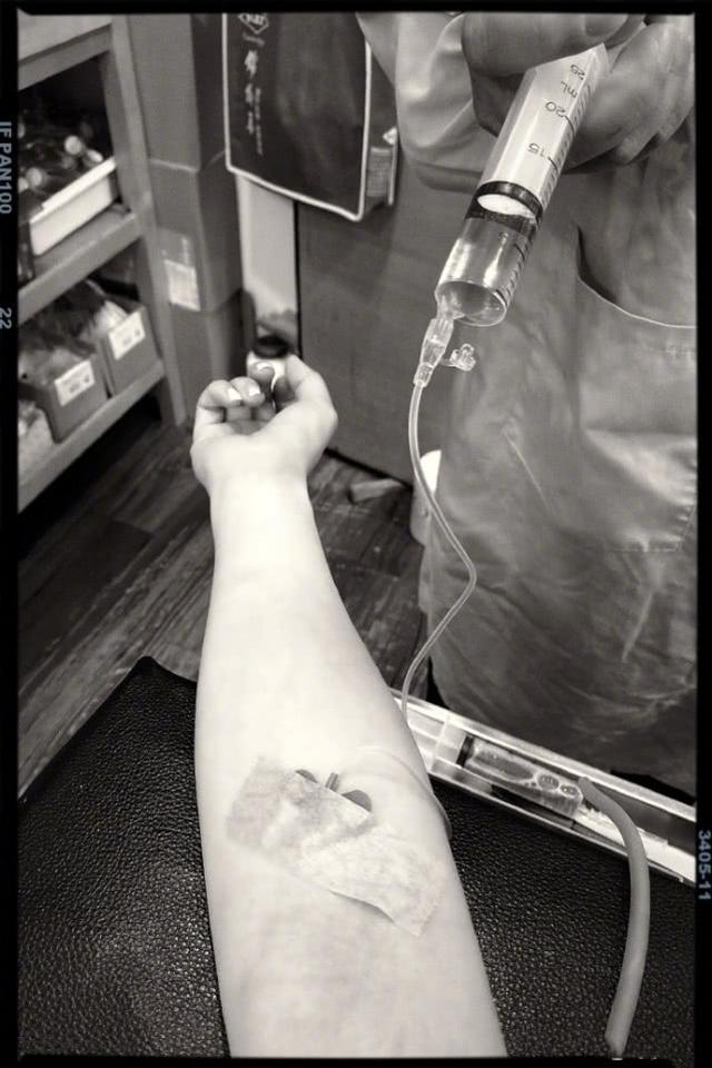 贾静雯还分享了一张医生为她打针输液的照片,看到她淤青手臂上的针头,相信修杰楷和三个女儿都心疼坏了吧。