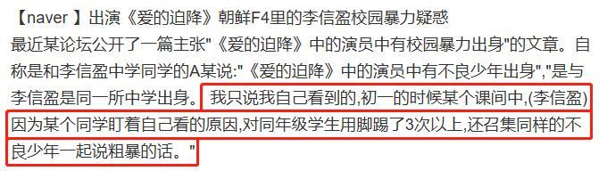 论坛上有一篇“爱的迫降中有一名演员是校园暴力出身”的帖子在网上引起热议,发帖人说自己与李信盈是同一所中学的学生,自己只把看见过的事情罗列出来。