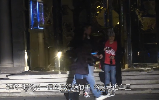 报道中还指出,舒畅与该男子用餐后又到了一处KTV与好友们唱歌,直到第二天5点多才结束。舒畅先行出门,站在门口等候友人,中年精英男似乎喝得有点多,与友人推推嚷嚷才出门。之后中年男子直接拉着舒畅的手回到自己的车里,车一直开到某酒店门口,两人随后登记入住。
