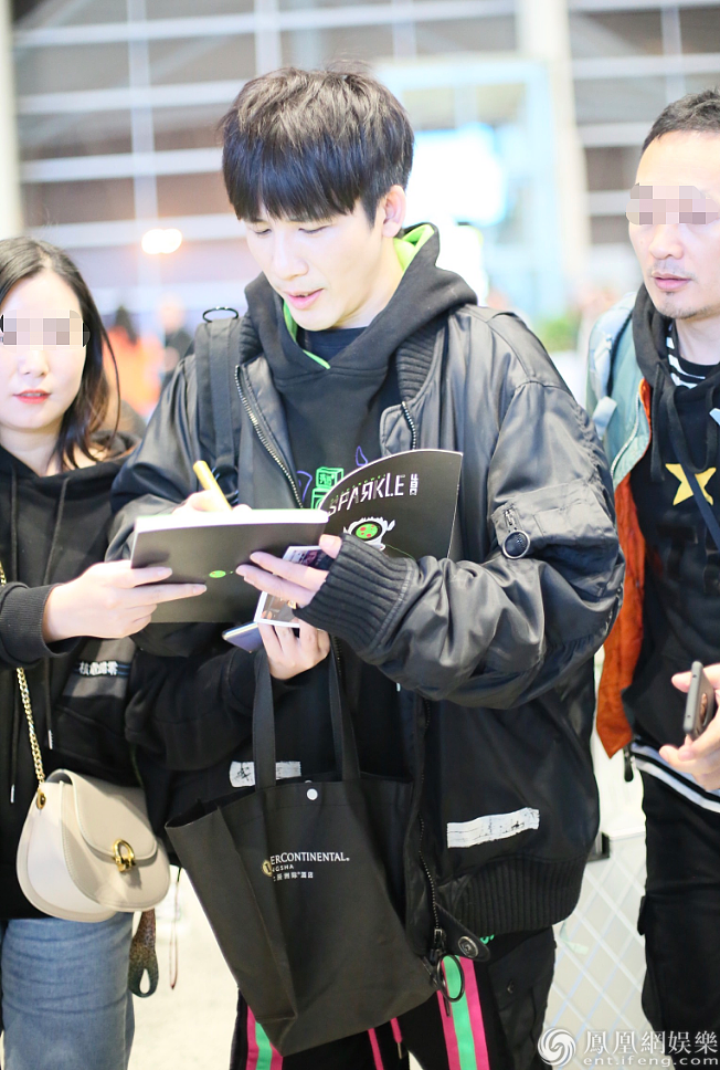 即便已到登机时间,大张伟仍满足粉丝签名要求。