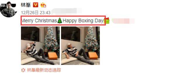 12月26日当晚,林峯更新社交动态,晒出了一张照片,我们看到照片里的他戴着一顶帽子,旁边是一颗圣诞树,这张照片应该是女友视角吧,不然怎么会这么帅呢?