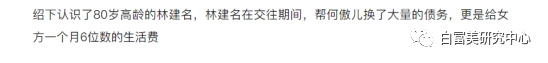 而且据说不仅帮忙还债,还给一个月6位数的生活费。