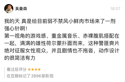 影片的前期评论中,也有不少提到影片的爽: