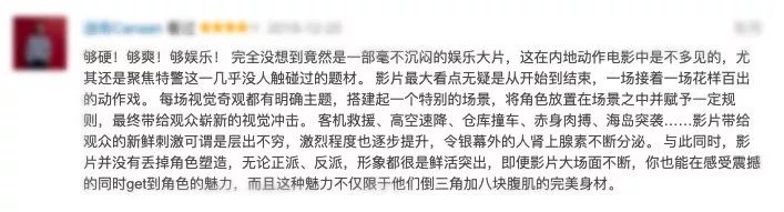 影片导演丁晟之前在制作特辑里提到,想拍摄一部能够爽到观众的动作警匪大片。