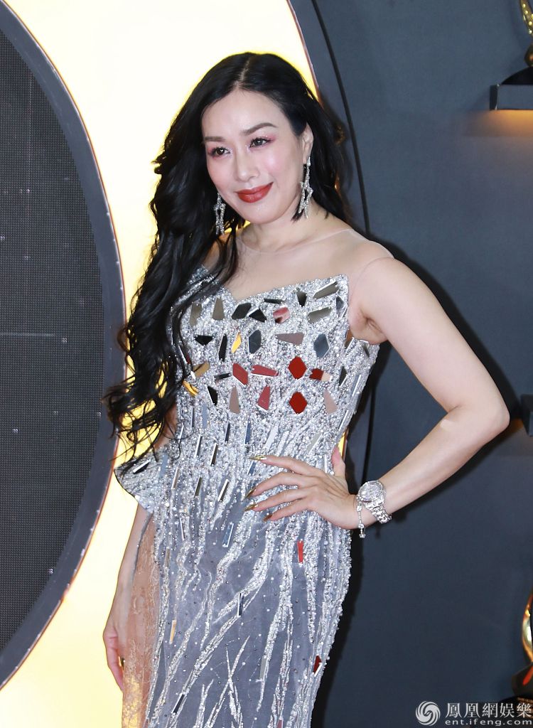 钟丽缇穿着亮片吊带裙华丽闪耀。