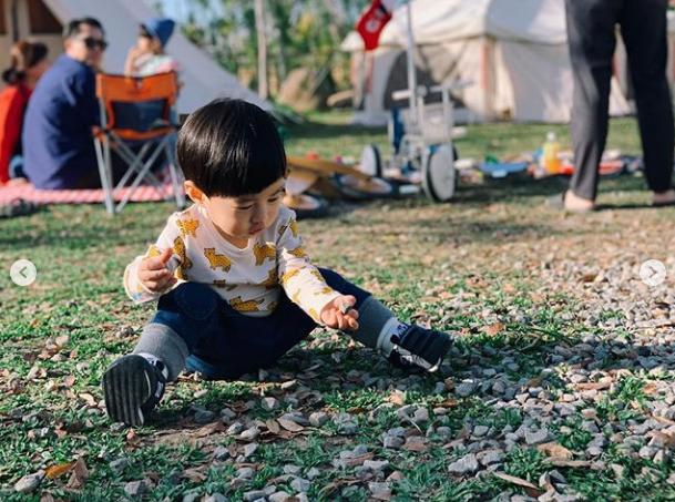 丁文琪还po出两张酷比的萌照,酷比因为有爸爸妈妈陪伴所以整个过程都玩得非常开心、专注,萌萌哒的小模样太可爱了。